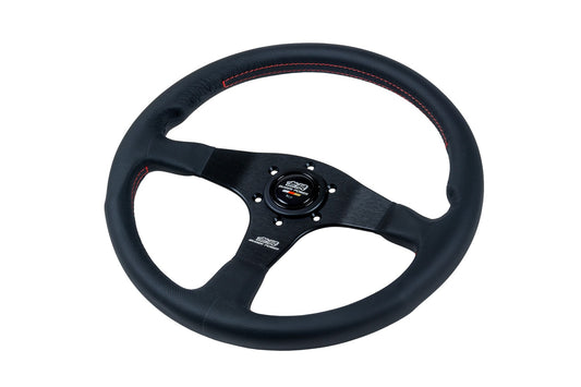 MUGEN RACING III, 350MM STEERING WHEEL - BLACK SMOOTH LEATHER RED STITCHING
