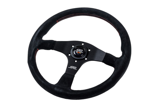 MUGEN RACING III, 350MM STEERING WHEEL - BLACK SUEDE RED STITCHING