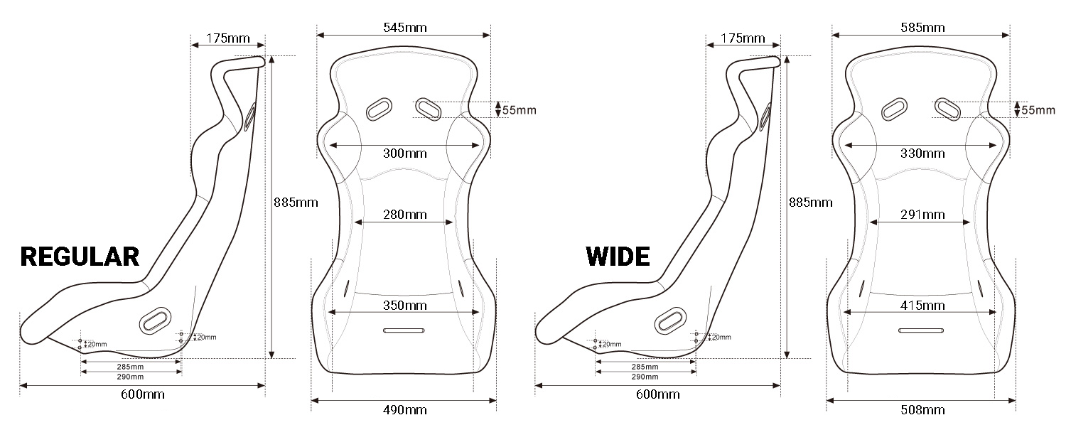 The BUDDY CUB P-1 RACING V.2 BUCKET SEATS are offered in REGULAR and WIDE sizes to ensure the perfect fit for a wide range of users.
