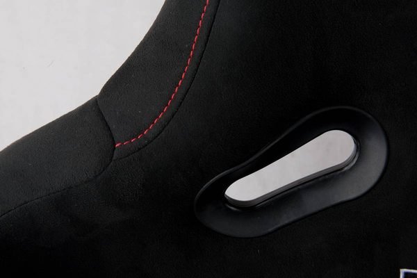 HIGH-QUALITY FABRIC COVERS: Utilizing High-Quality Alcantara Covers and featuring vibrant red stitching, BUDDY CUB P-1 RACING V.2 BUCKET SEATS not only breathe well but also offer excellent grip, ensuring optimal comfort during those extended track days.