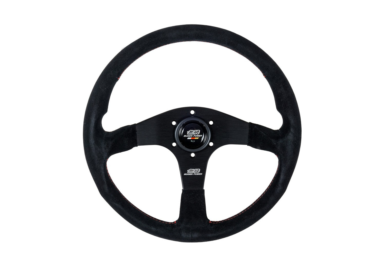 MUGEN RACING III, 350MM STEERING WHEEL - BLACK SUEDE RED STITCHING