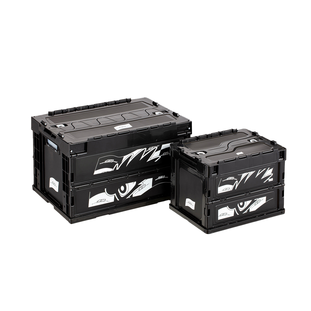 Crafted from sturdy plastic in a compact S size, this versatile container is perfect for use in a variety of settings, from the bustling city to the adrenaline-fueled racetrack. With a generous capacity of 20.8L and a weight of just 1.27kg, it offers optimal portability without compromising on durability, withstanding a compression load of 4.51kN (460kgf) and providing ample storage space. For those in need of even greater capacity, the larger size offers a generous 50.1L capacity while remaining lightweight at 2.65kg. With external dimensions of 530 x 366 x 334mm when assembled and 530 x 366 x 95mm when folded, it can withstand a compressive load of 6.59kN (670kgf) while still remaining easy to store.