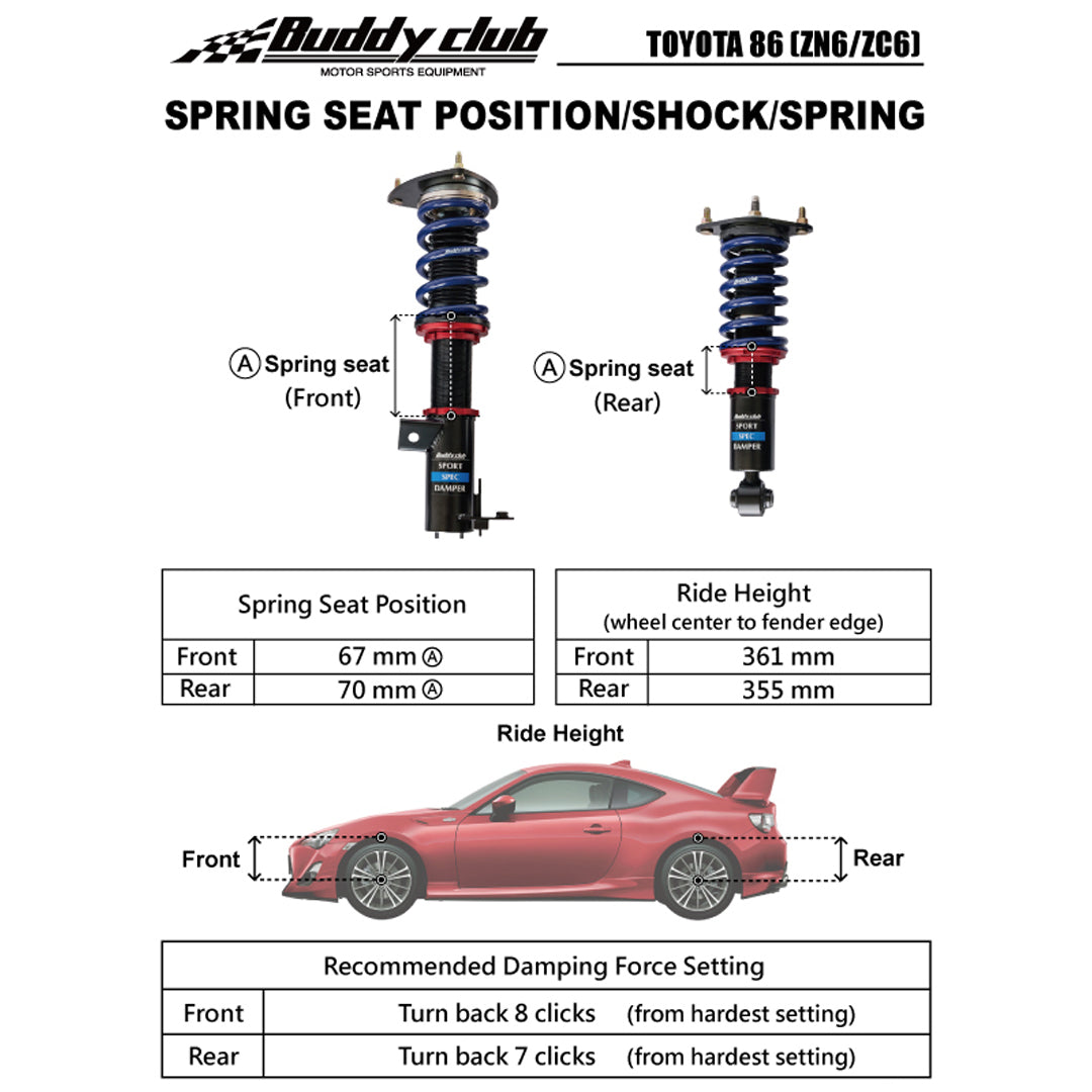 BUDDYCLUB SPORTS SPEC DAMPER AND COILOVER SPRING KIT TO SUIT TOYOTA 86 (FT) & SUBARU BRZ (ZN6)