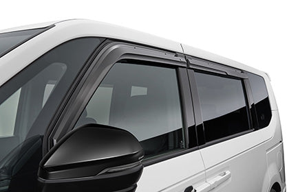 In the case of a typical door visor, when using it with the window slightly lowered, there is a tendency for the air expelled from the front of the opening to create turbulence and flow back into the interior from the rear of the opening.