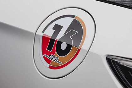 Circular sticker with a design that combines Mugen's corporate colours of white, red, gold, and black with the works number "16". It uses a film-based material and can be attached to a gently curved surface, so you can enjoy customizing it by attaching it to various places on the vehicle. Size: 130mm in diameter *Since the boundary line of the sticker is transparent, the boundary line will be the body colour when pasted on the vehicle body.